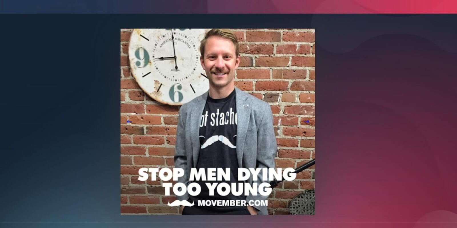 Movember has also changed for me personally, as my wife and I welcomed our first child, a baby boy, into the world last year. My actions now not only impact the quality of years together that we have ahead of us, but also model key behaviors for him to adopt as he gets older.