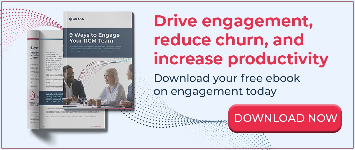 It's a scene all healthcare RCM leaders have experienced: an overworked revenue cycle team, aging accounts, high employee turnover, and staff morale so low you can spot it from across the office. Employee engagement across every industry is at a meager 36%, leaving a ton of room for improvement. Naturally, everyone wants an engaged team -- they're more productive and more likely to stay with you. But it's one thing to want an engaged team; it's another to have one.