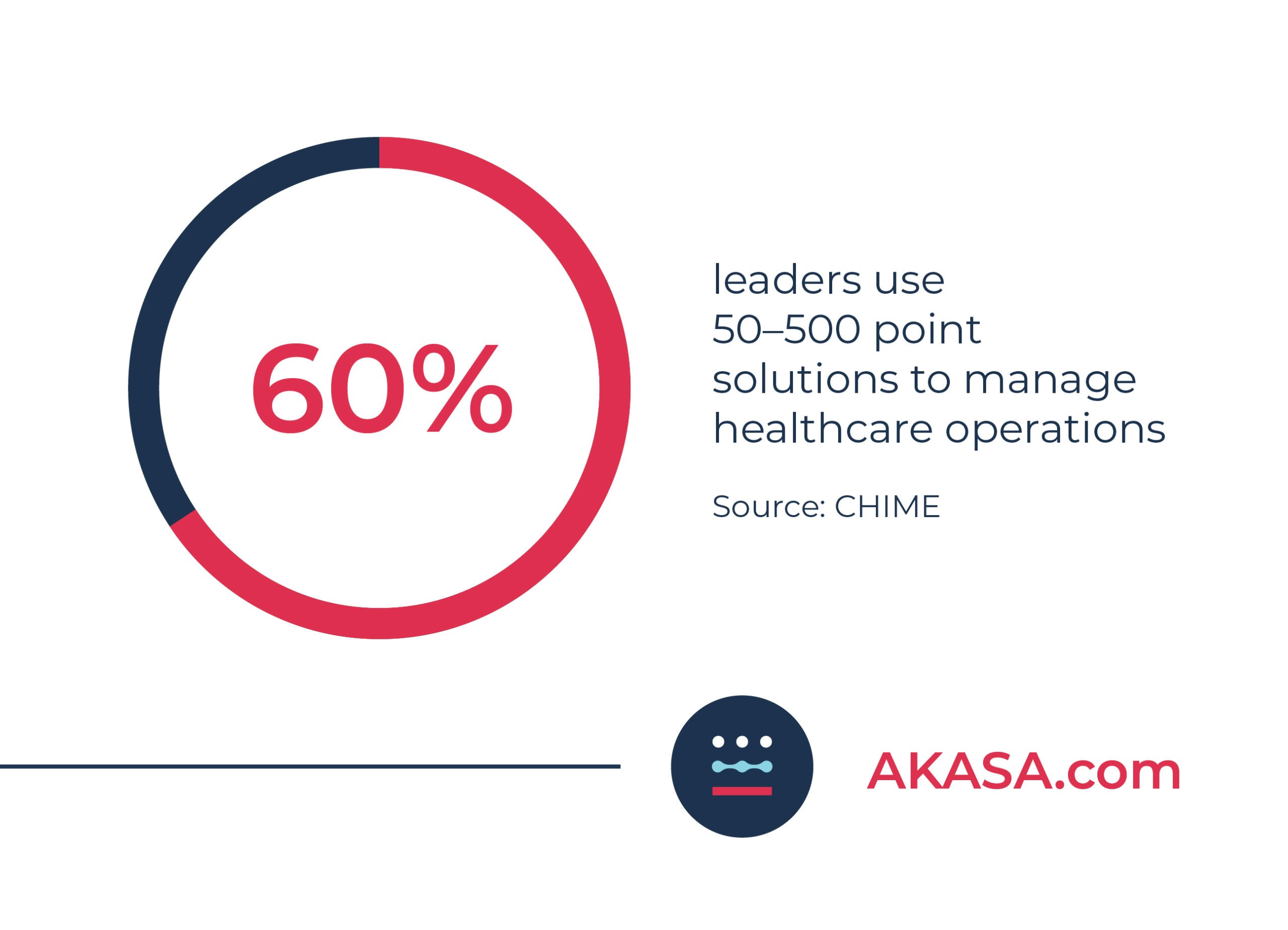 About 60% of healthcare leaders use between 50 and 500 point solutions to manage healthcare operations, according to a survey from the College of Healthcare Information Management Executives (CHIME).