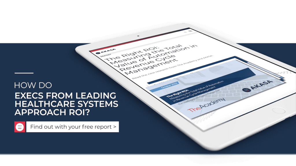 This still leaves the matter of accurately determining ROI for RCM automation. Current approaches to ROI simply don’t work. To counter this, we partnered with the Health Management Academy to survey executives from more than 40 leading healthcare systems in the United States.