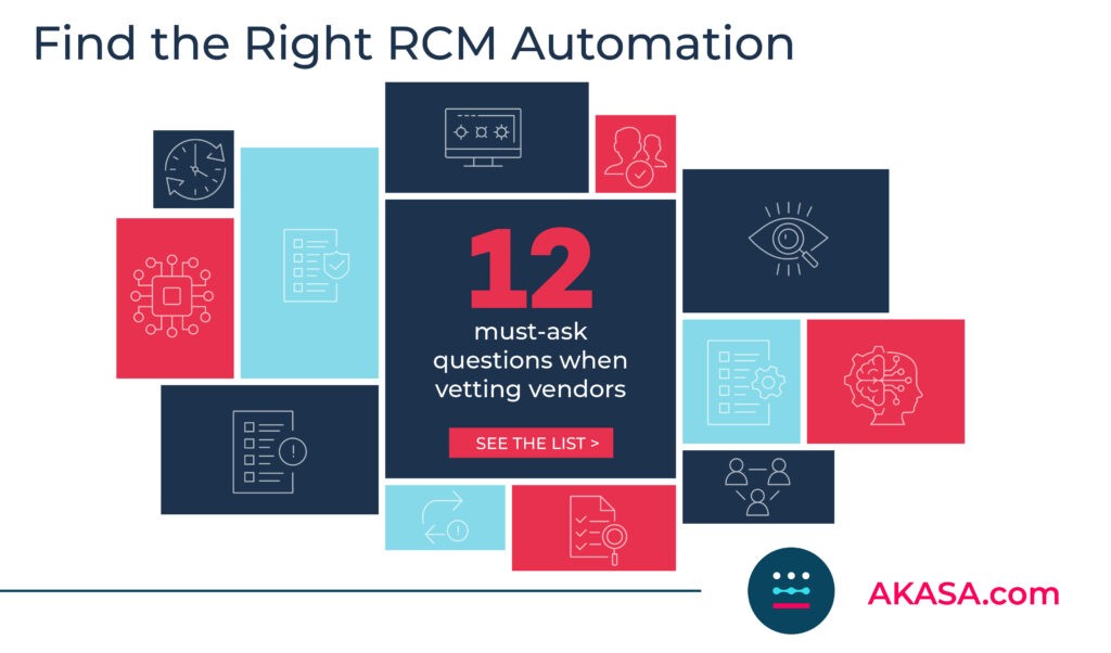 Many healthcare teams recognize the importance of implementing automation for their revenue cycle management (RCM). After all, RCM automation can help reduce costs, increase staff productivity, and boost revenue. Yet often, IT isn’t included in the early conversations around RCM automation. As a technology leader, your department has the knowledge required to vet automation vendors for technology fit, security, and more. To identify and implement the right RCM automation, your team should ask specific questions upfront and when vetting potential technology vendors to ensure you’re setting your organization up for success.