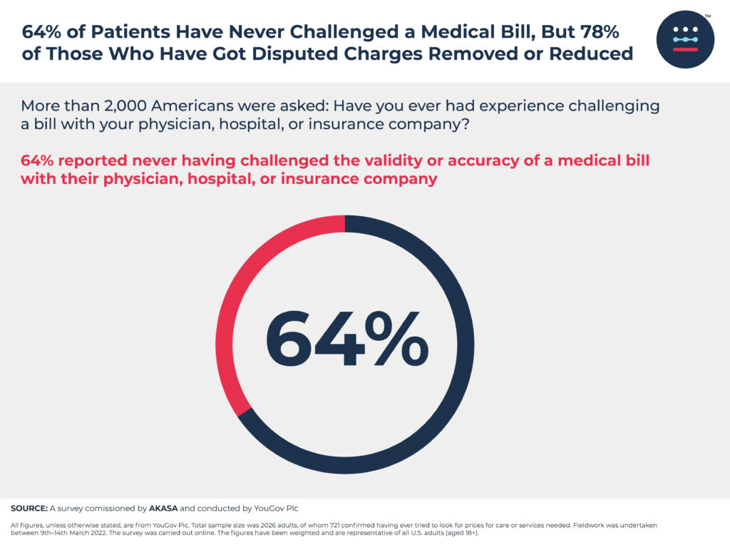64% reported never having challenged the validity or accuracy of a medical bill with their physician, hospital, or insurance company