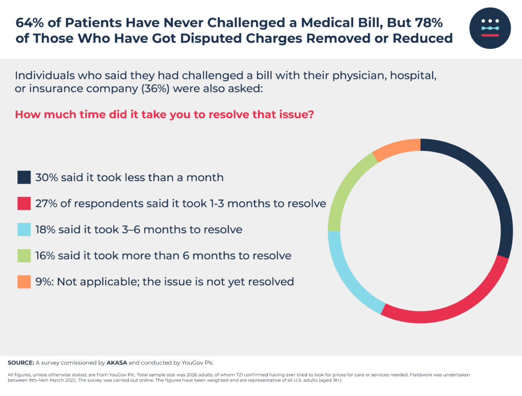 More than one-third of individuals who have challenged a medical bill after receiving it said it took more than three months to resolve the issue.