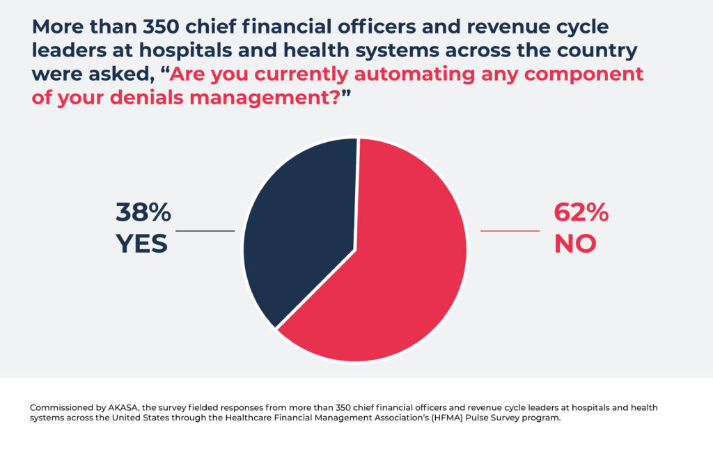Source: Commissioned by AKASA, the survey fielded responses from more than 350 chief financial officers and revenue cycle leaders at hospitals and health systems across the United States through the Healthcare Financial Management Association’s (HFMA) Pulse Survey program.